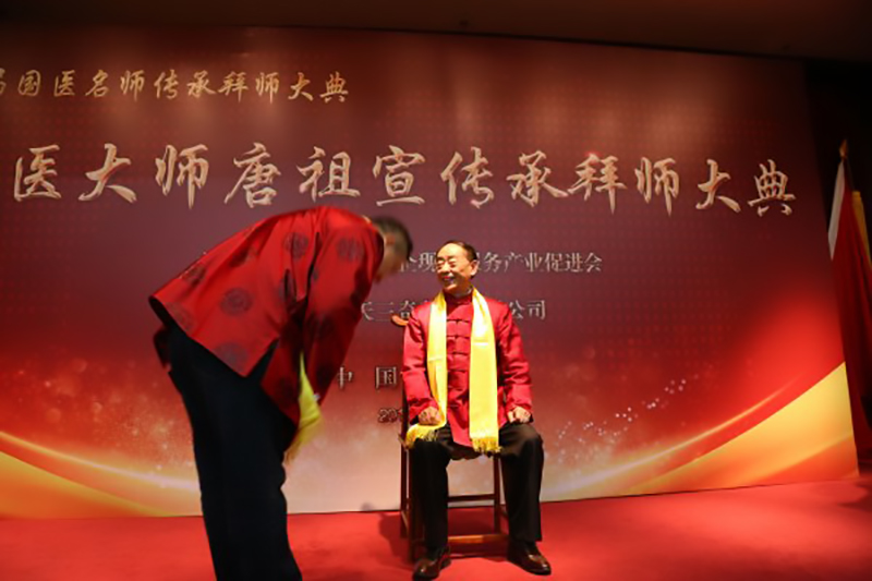 2017年3月28日,在中國(guó)中醫(yī)藥界從事多年的北京惠蜂高科董事長(zhǎng)倪仔鑫先生以其誠(chéng)實(shí)、勤奮、善良、堅(jiān)韌、擔(dān)當(dāng)?shù)淖吭饺似泛陀掠诔袚?dān)社會(huì)責(zé)任的博大胸懷,帶領(lǐng)集團(tuán)公司全體同仁研發(fā)出了品質(zhì)卓越的綠色健康蜂產(chǎn)品,贏得了國(guó)醫(yī)大師唐祖宣的認(rèn)可,正式被國(guó)醫(yī)大師唐祖宣教授收為中醫(yī)藥學(xué)術(shù)傳承弟子。“一日為師,終身為父。師者,傳道、授業(yè)、解惑也”,中醫(yī)界更講究的是師道傳承,德醫(yī)相授。在拜師儀式上,弟子們分別向國(guó)醫(yī)大師唐祖宣行鞠躬禮、獻(xiàn)上拜師帖、奉上一杯拜師茶、師徒互贈(zèng)禮物。