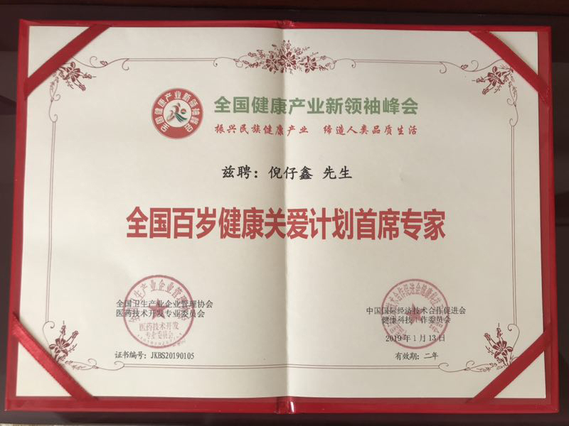 倪仔鑫董事長榮獲“全國百歲健康關(guān)愛計劃首席專家”